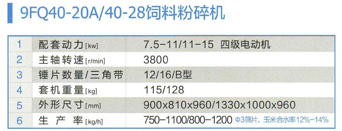 1. 9FQ40-20A/40-28飼料粉碎機9FQ40-20A/40-28飼料粉碎機